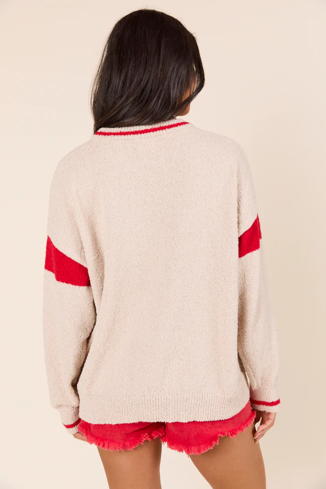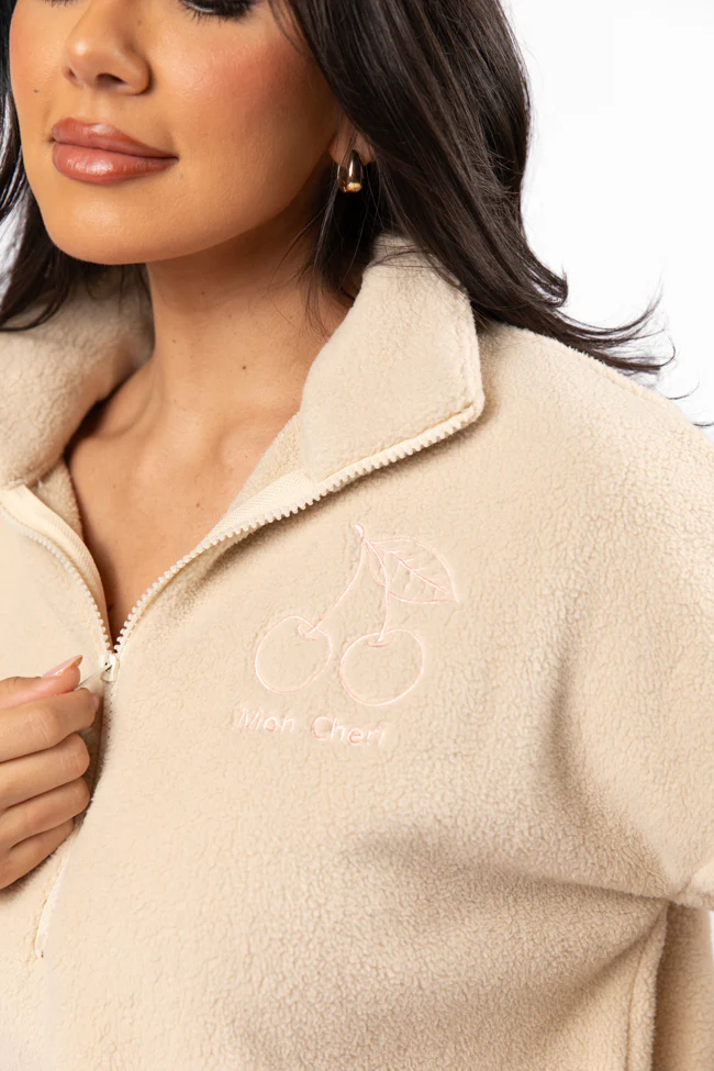 After Hours Mon Cheri Beige Embroidered Fleece Pullover FINAL SALE