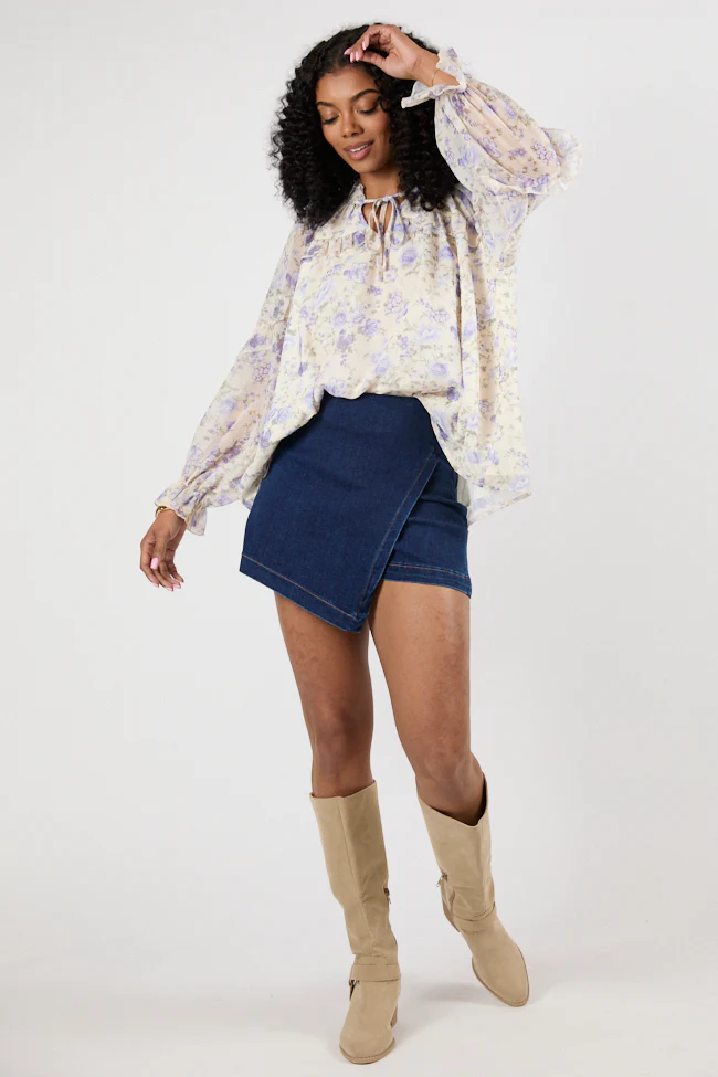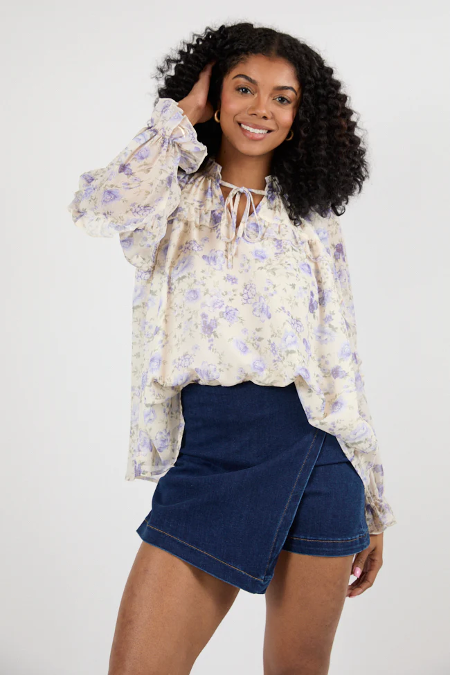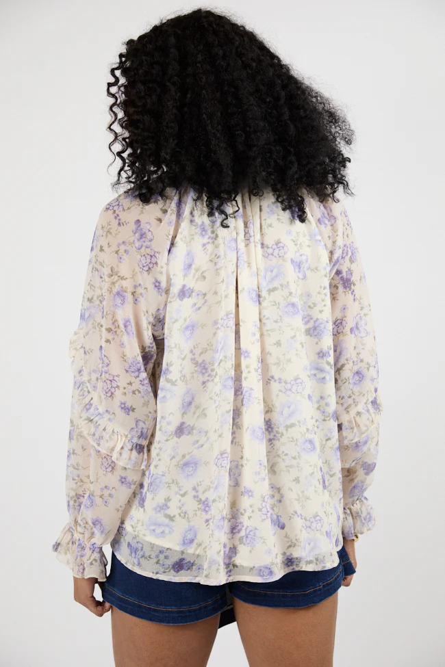 All I Want Purple Multi Oversized Ruffle Detail Popover Floral Blouse FINAL SALE