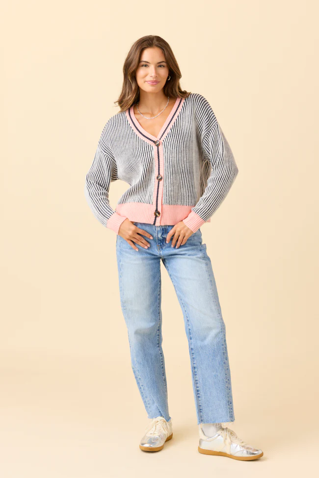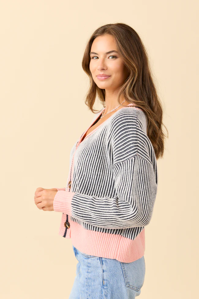 All Decked Out Pink Lightweight Striped Sweater FINAL SALE