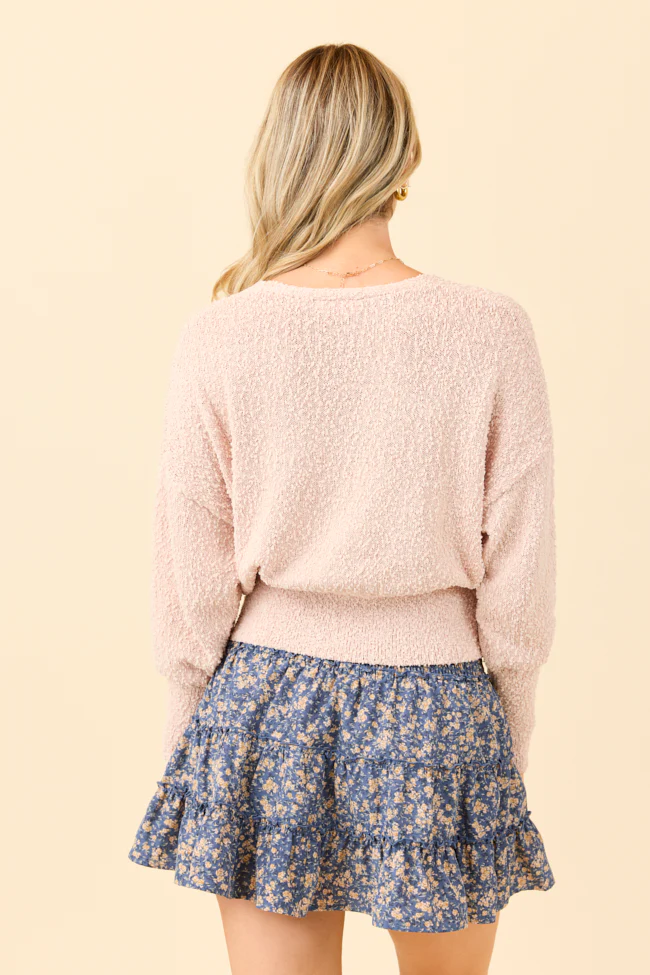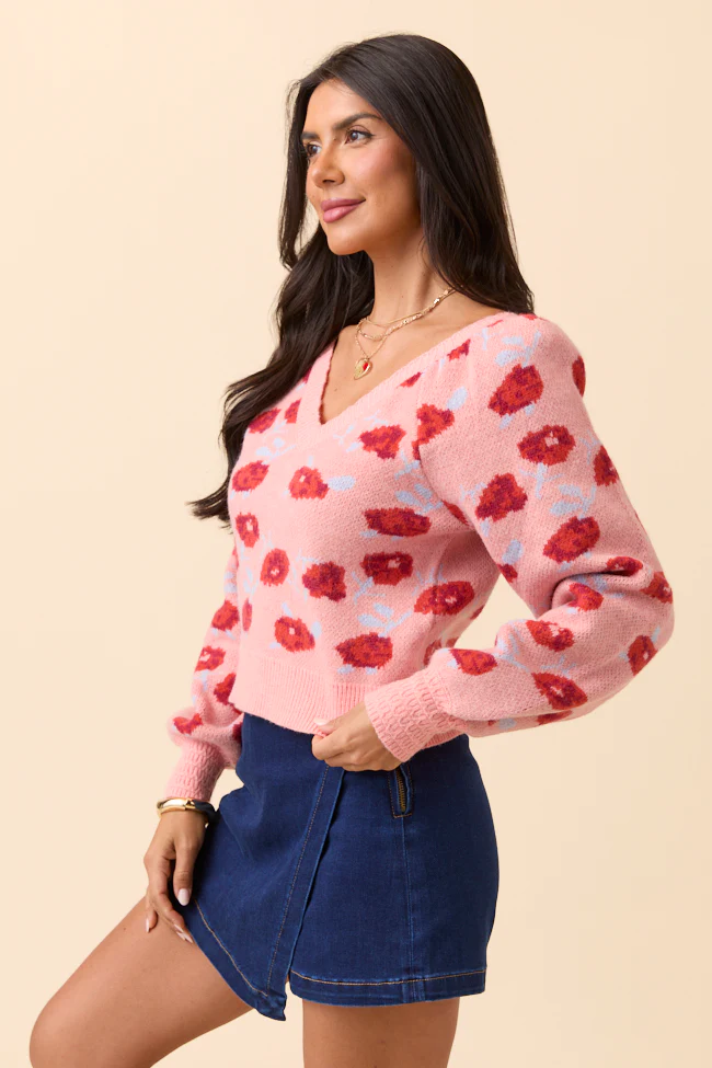 Amara Long Sleeve Blush Floral V Neck Sweater