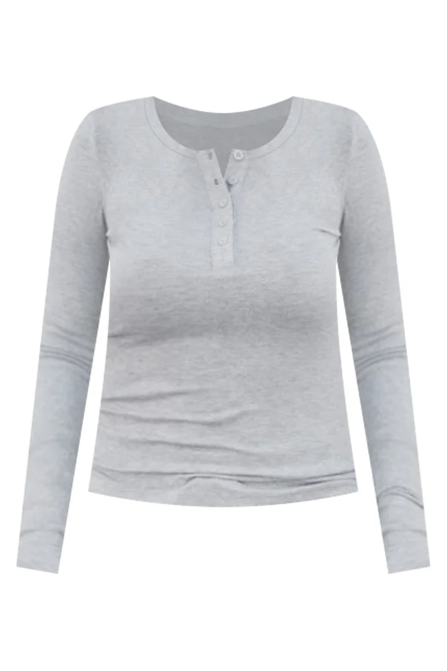 All The Better Grey Ribbed Knit Henley Long Sleeve Tee FINAL SALE