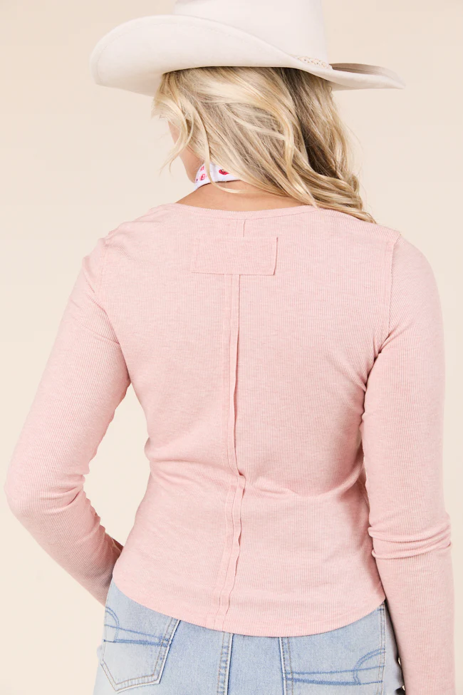 Suanna Long Sleeve Pink Ribbed Knit Tee