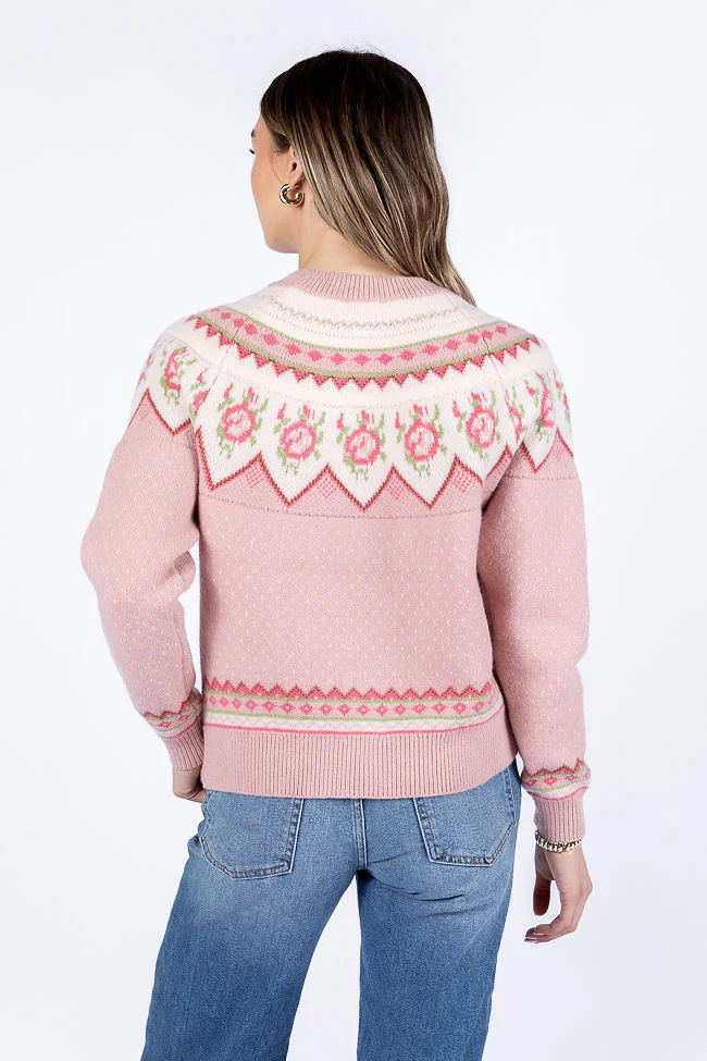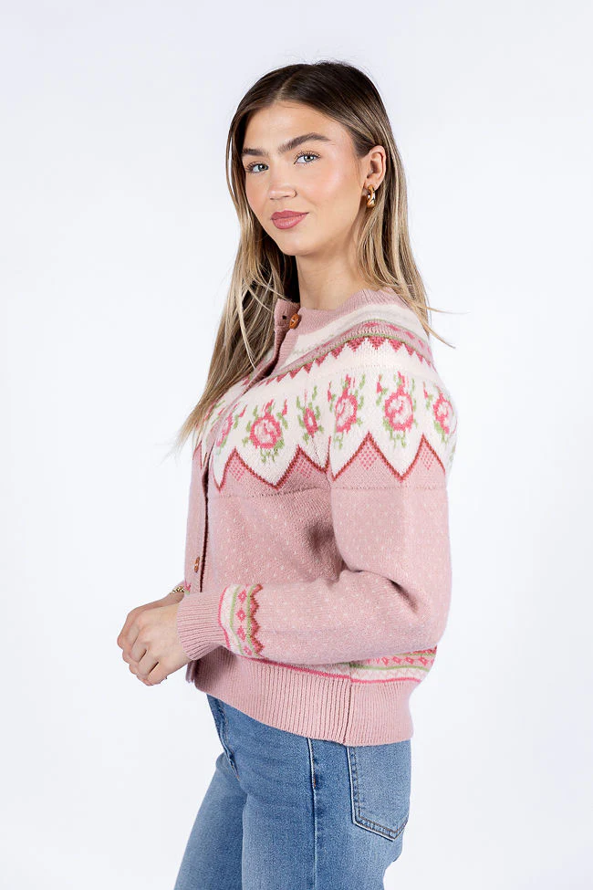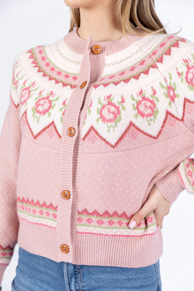 Sunny Meadow Pink Floral Fair Isle Cardigan FINAL SALE