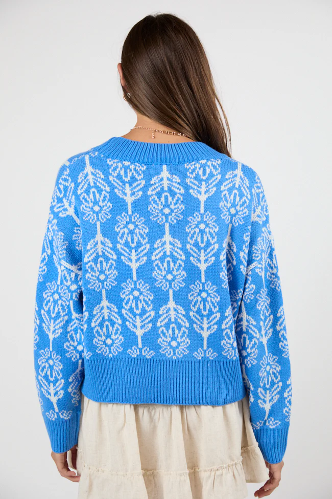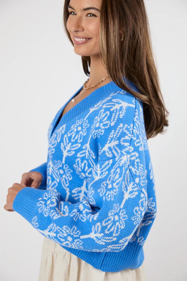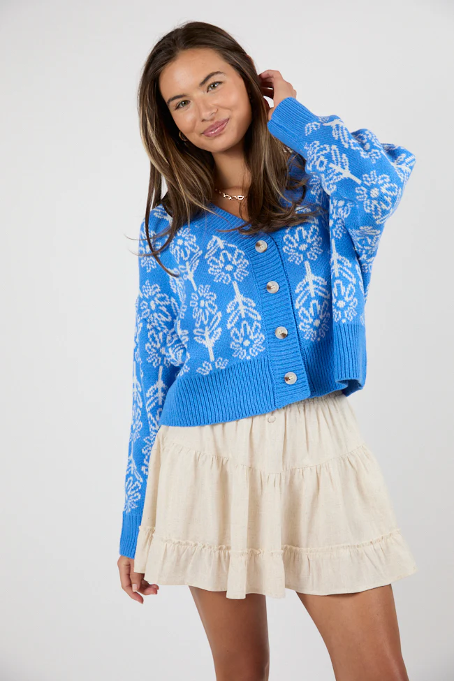 Stay Sweet Blue Block Floral Print Cardigan FINAL SALE