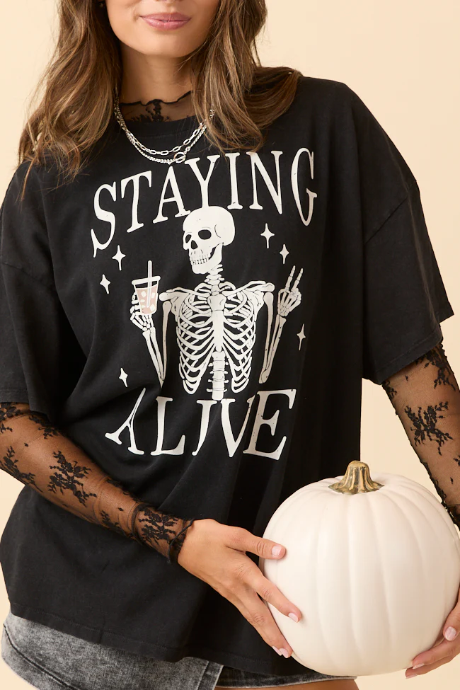 Staying Alive Black Oversized Graphic Tee DOORBUSTER
