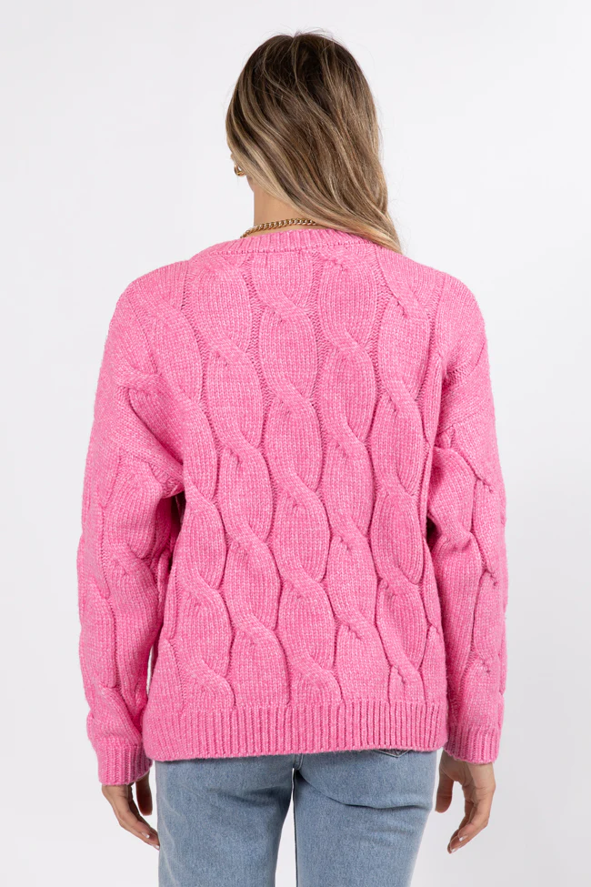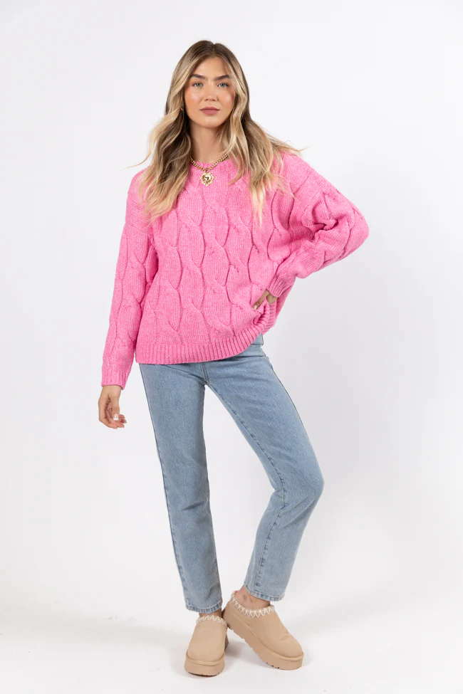 Steer Me Right Pink Oversized Cable Knit Sweater FINAL SALE