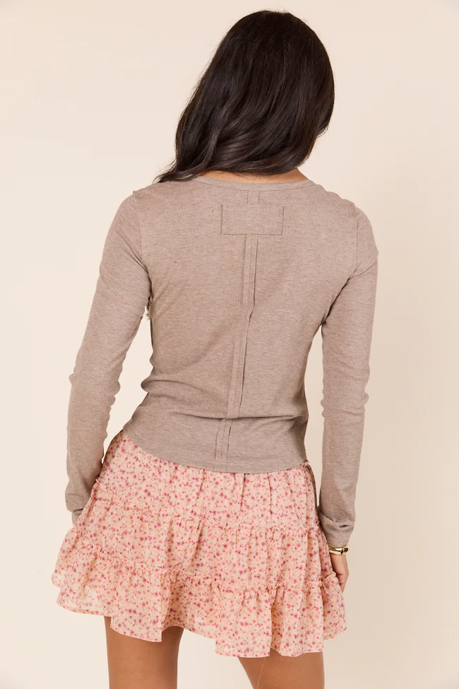 Suanna Long Sleeve Taupe Ribbed Knit Tee
