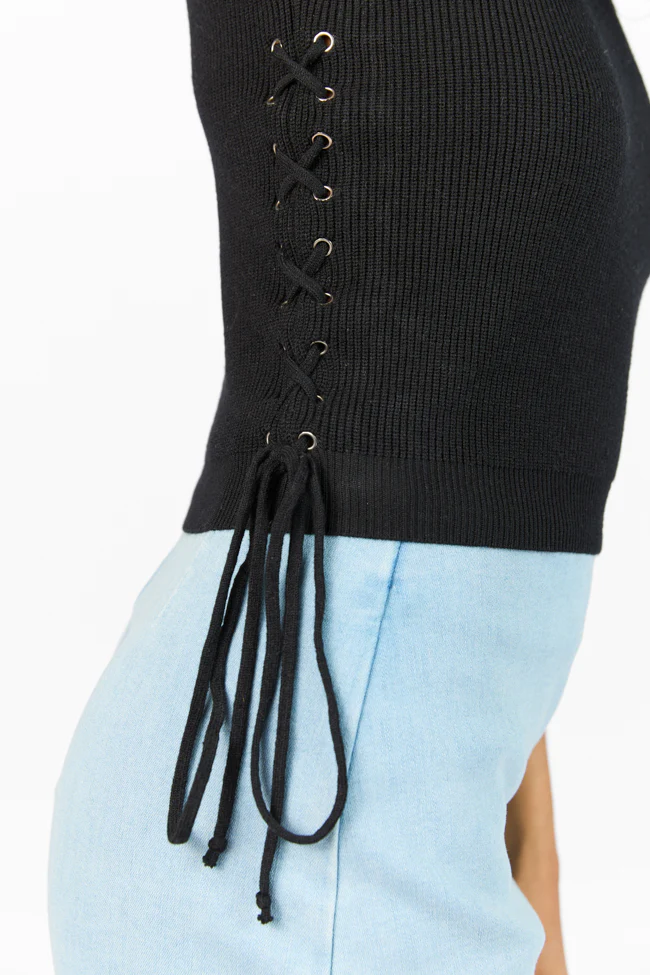 Strike The Right Note Black Corset Side Detail Sweater Tank