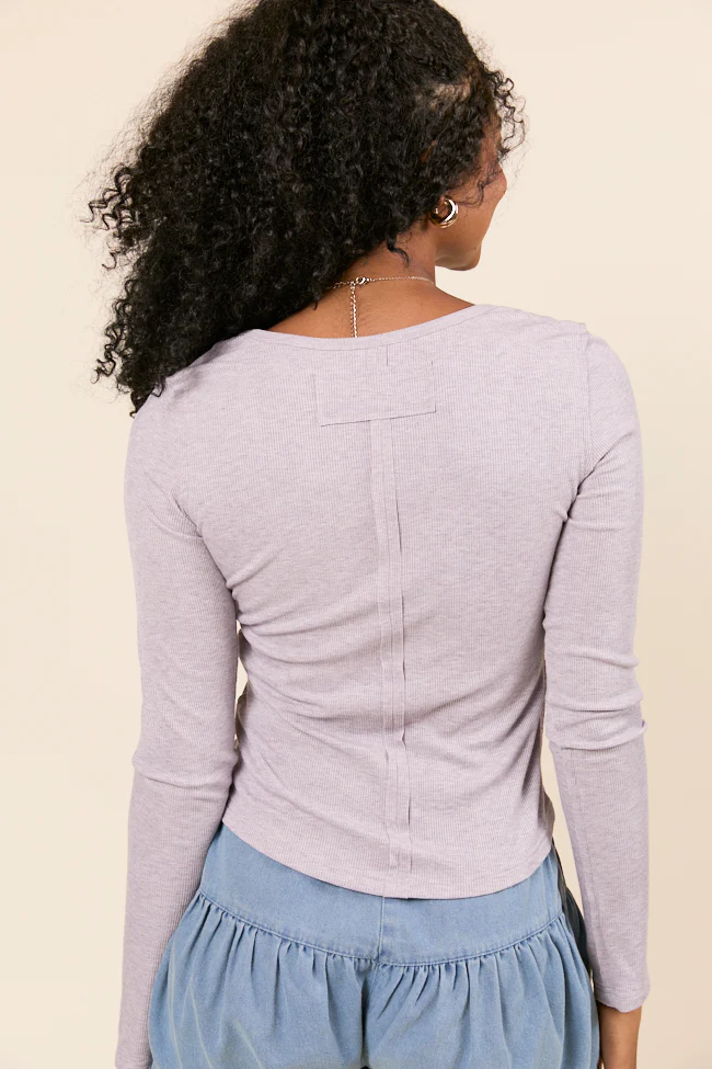 Suanna Long Sleeve Lavender Ribbed Knit Tee