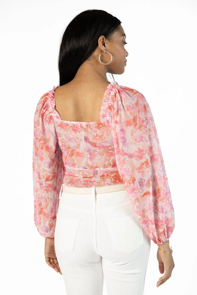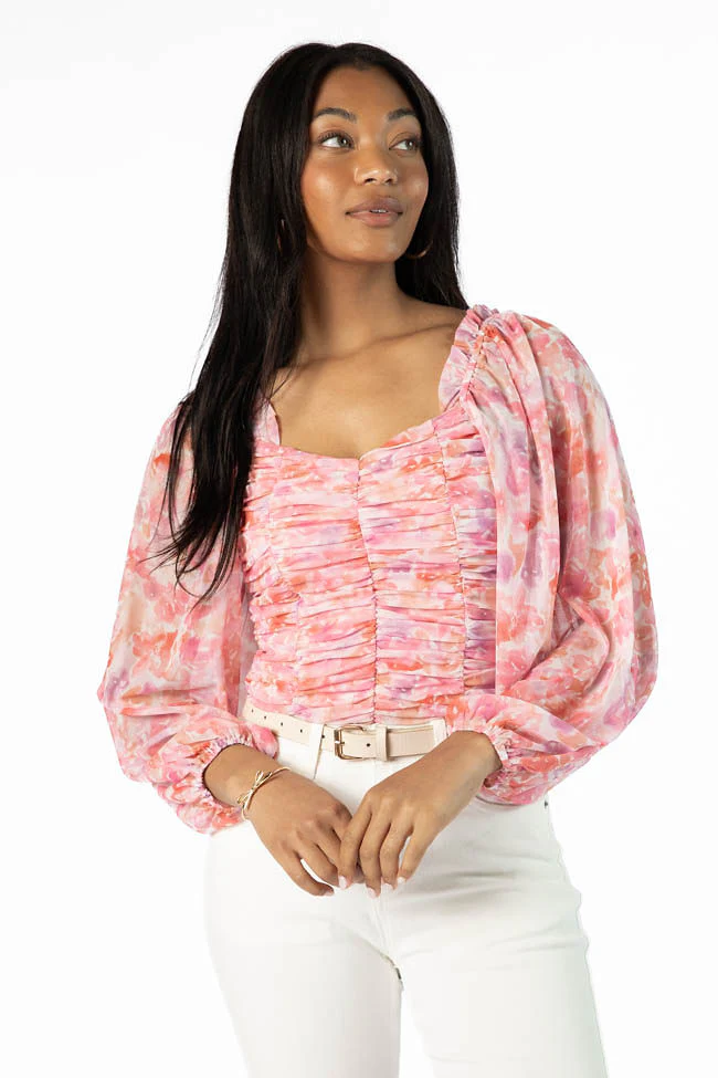 Show Me The Way Pink Multi Ruched Balloon Sleeve Floral Bodysuit FINAL SALE