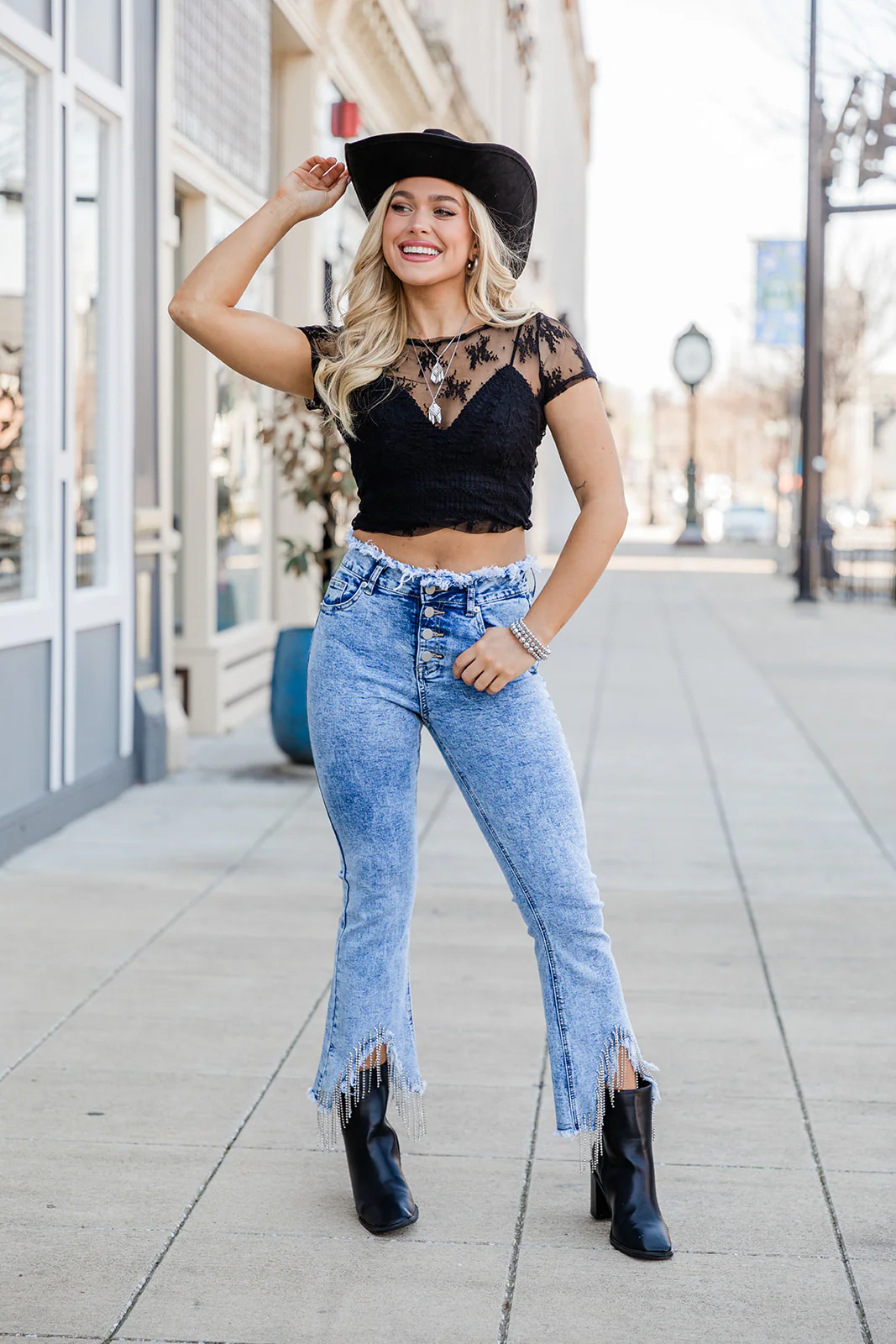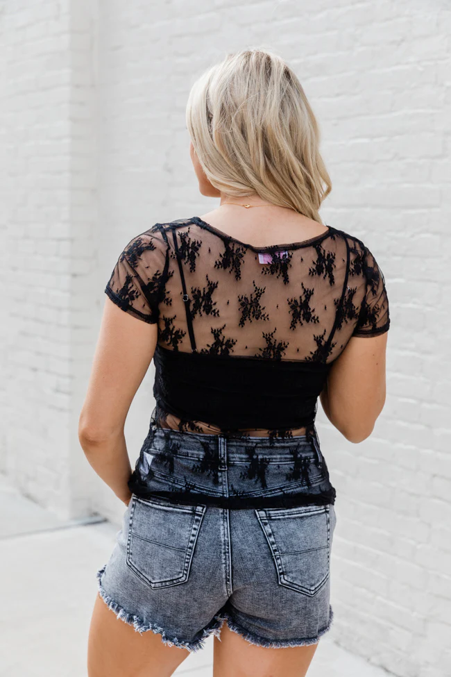 Speak Your Truth Black Mock Neck Lace Layering Blouse