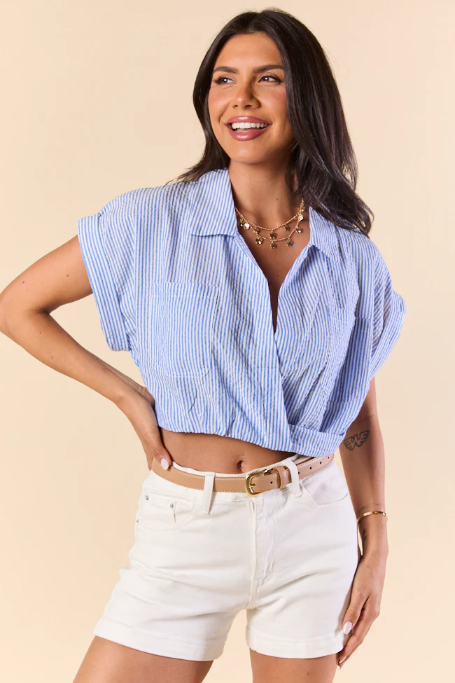 Skyline Blue Collar Cropped Striped Top FINAL SALE