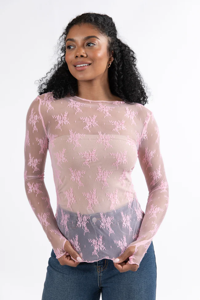 Speak Your Truth Pink Long Sleeve Layering Blouse