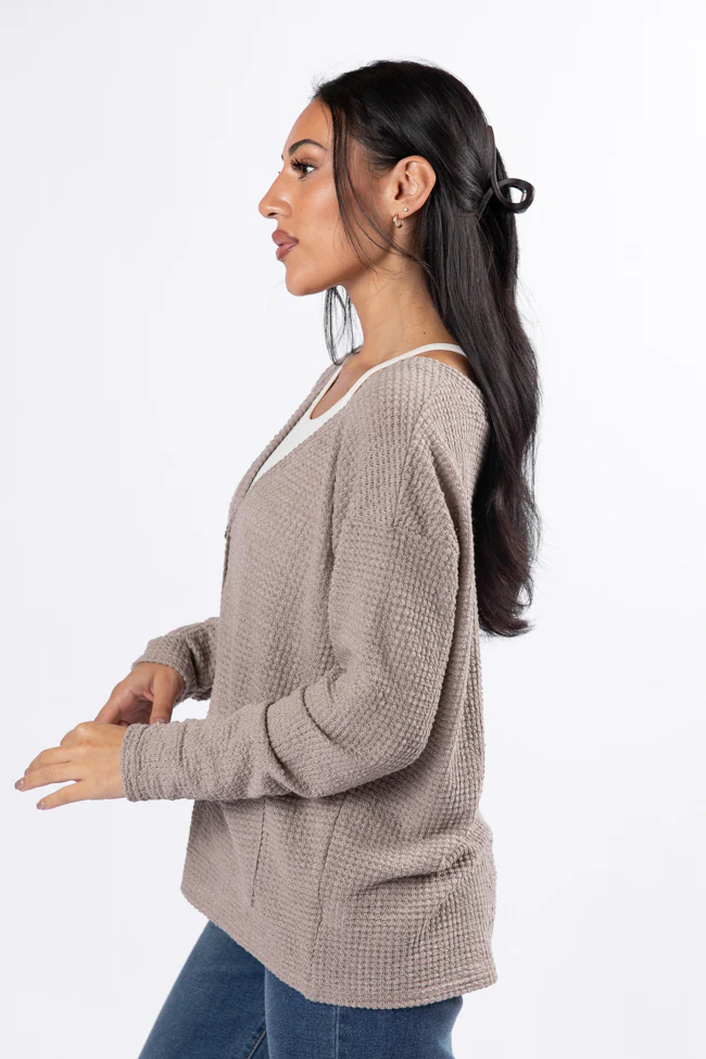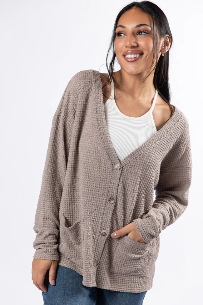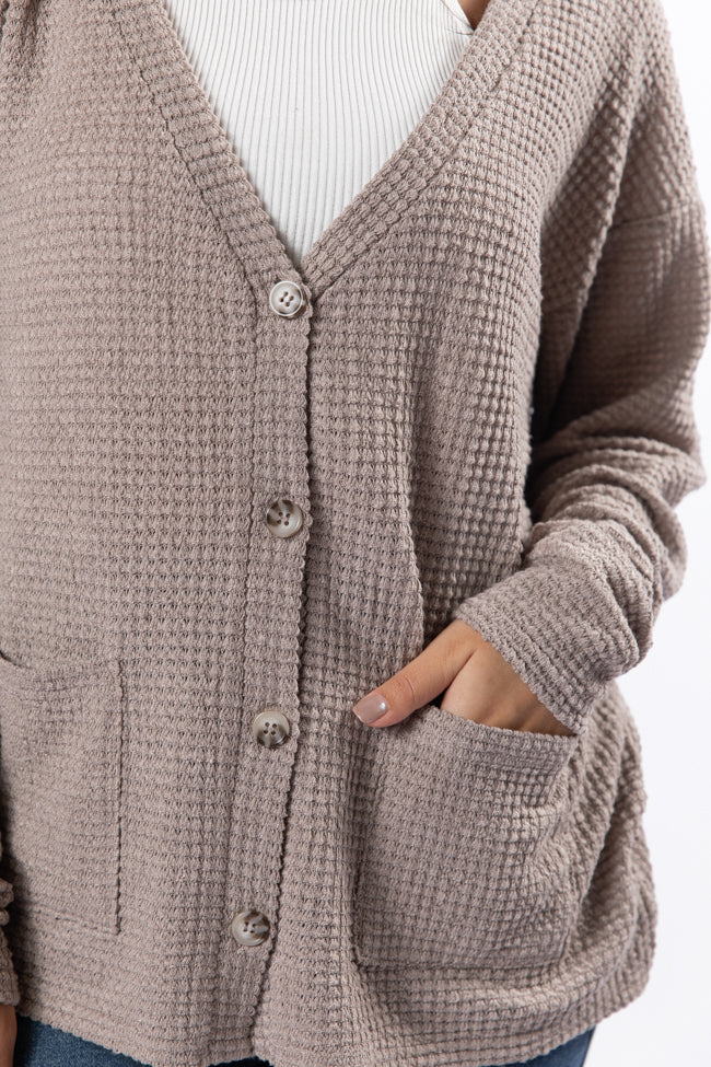 Sounds Like Me Taupe Waffle Knit Cardigan FINAL SALE