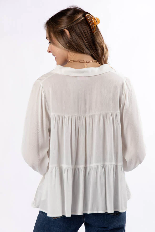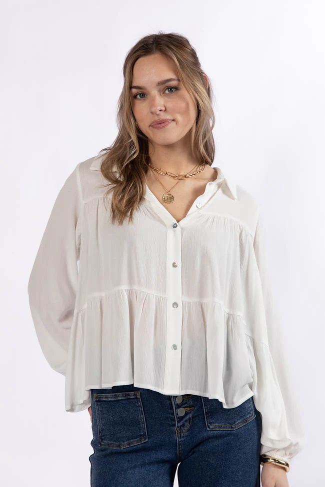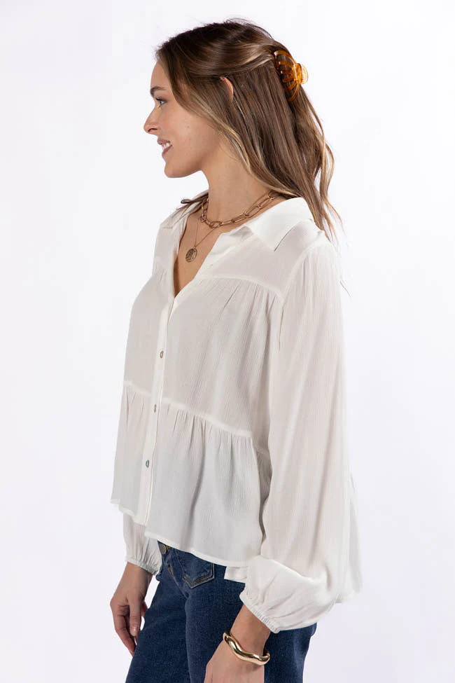 Something Good Ivory Tiered Relaxed Button Down Blouse FINAL SALE