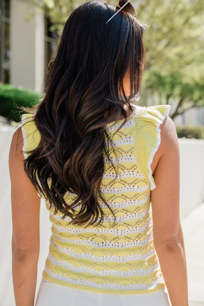 Social Hour Lime Striped Crochet Tank FINAL SALE