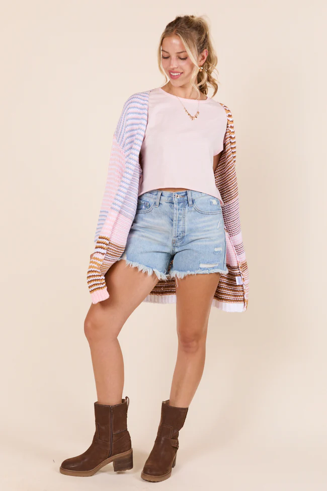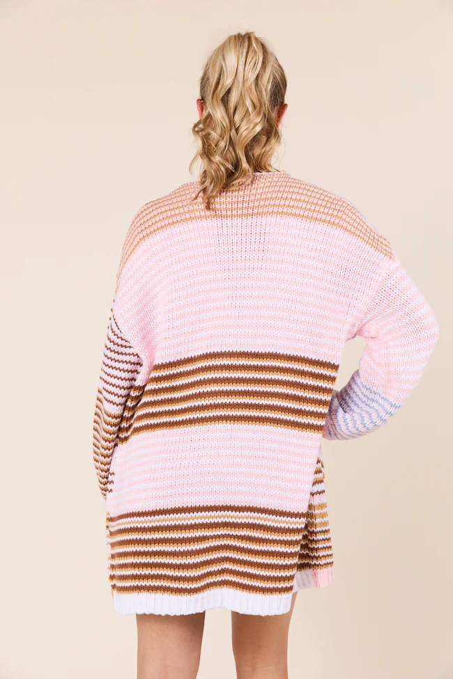 Shelbie Long Sleeve Blue and Pink Open Cardigan