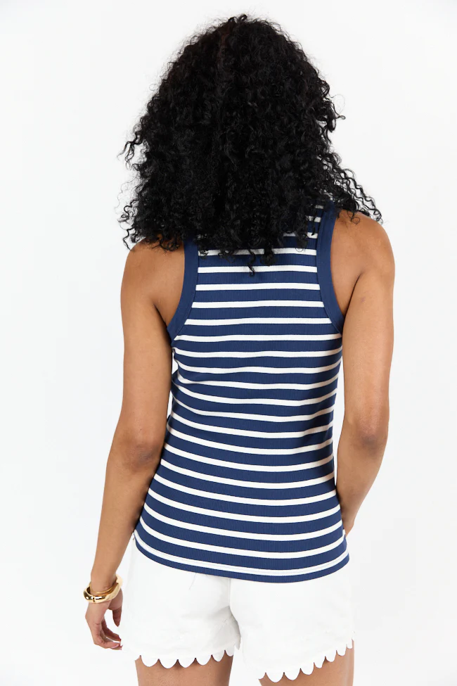Simple Navy Ribbed Knit Stripe Tank DOORBUSTER